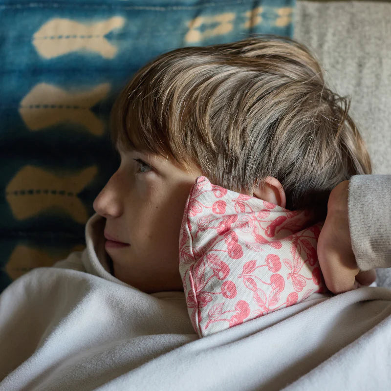 Each pillow is filled with smooth cherry stones reclaimed from the jam-making industry, giving new life to this natural byproduct. The stones mould softly to your body’s contours, offering comforting warmth or cooling relief exactly where you need it.