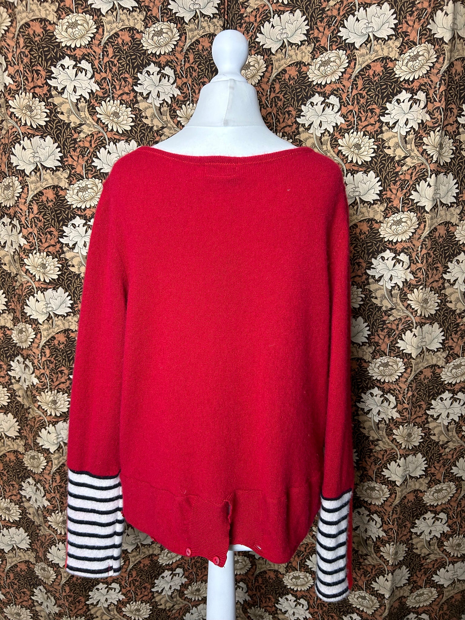 Nimpy Clothing upcycled 100% cashmere scarlet and striped cardigan medium