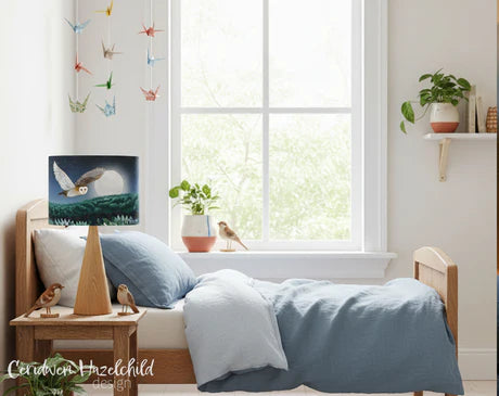Each Barn Owl Lampshade is individually handmade by Ceridwen Hazelchild in her Nailsworth studio, drawing inspiration from the wildlife, folklore, and stillness of the British countryside.