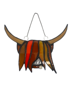 Liz Browning Glass Creations Highland Cow stained glass hanging